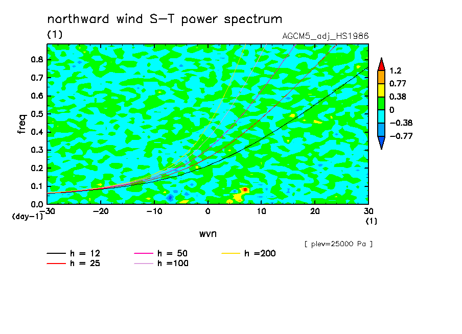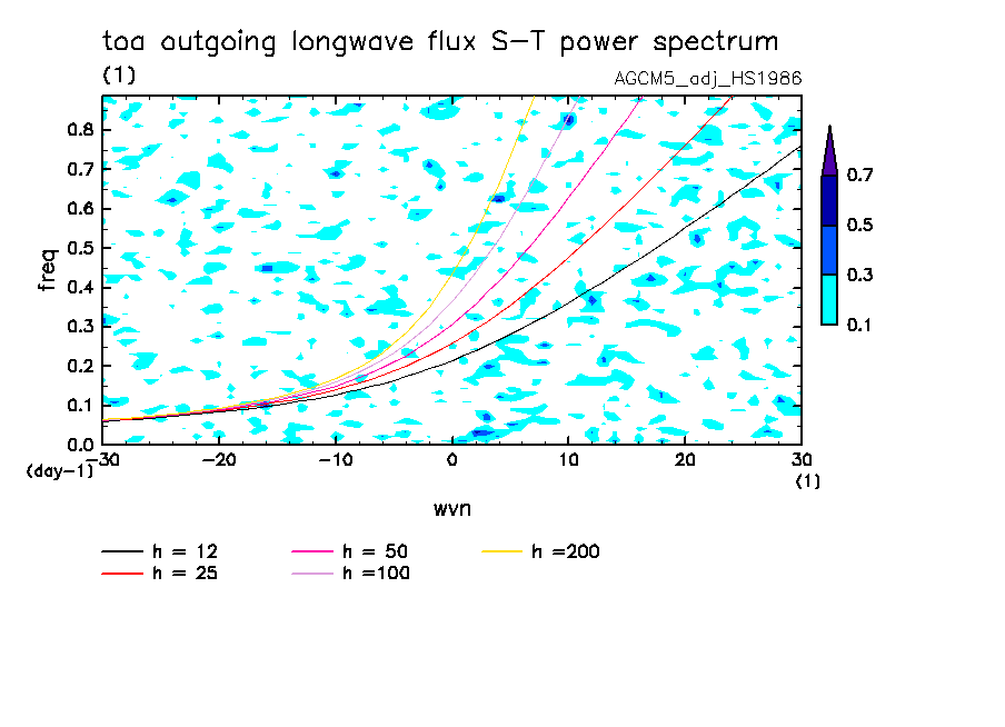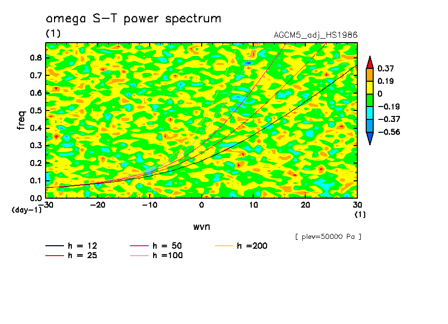 << Aqua Planet: Wheeler and Kiladis (1999) Plot from 'HS1986' Experiment >> group: AGUforAPE model: AGCM5 (adj scheme)