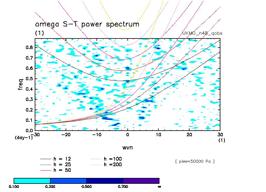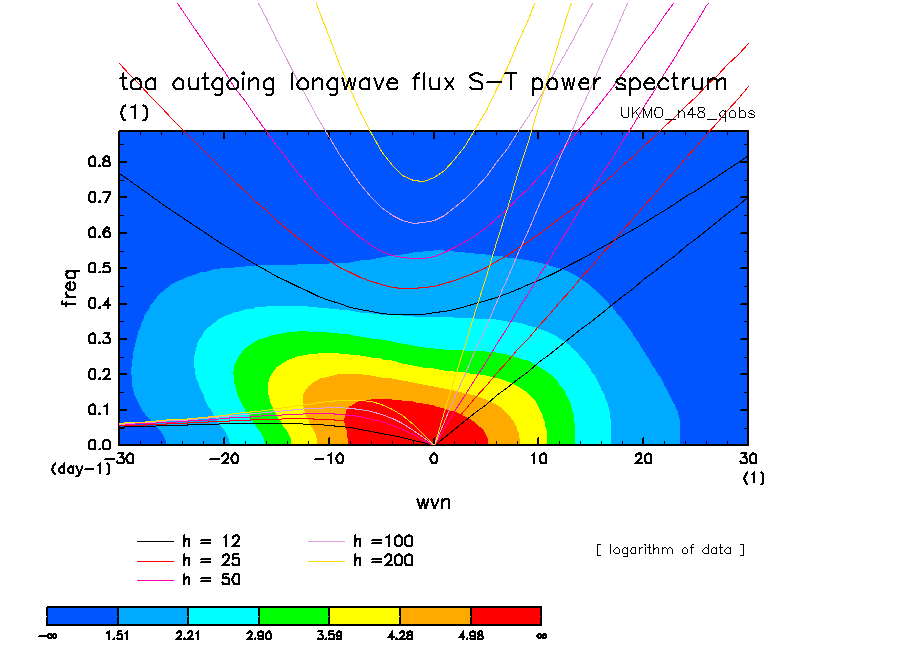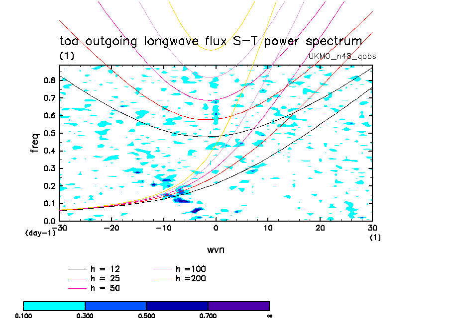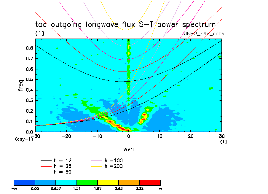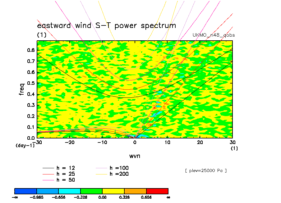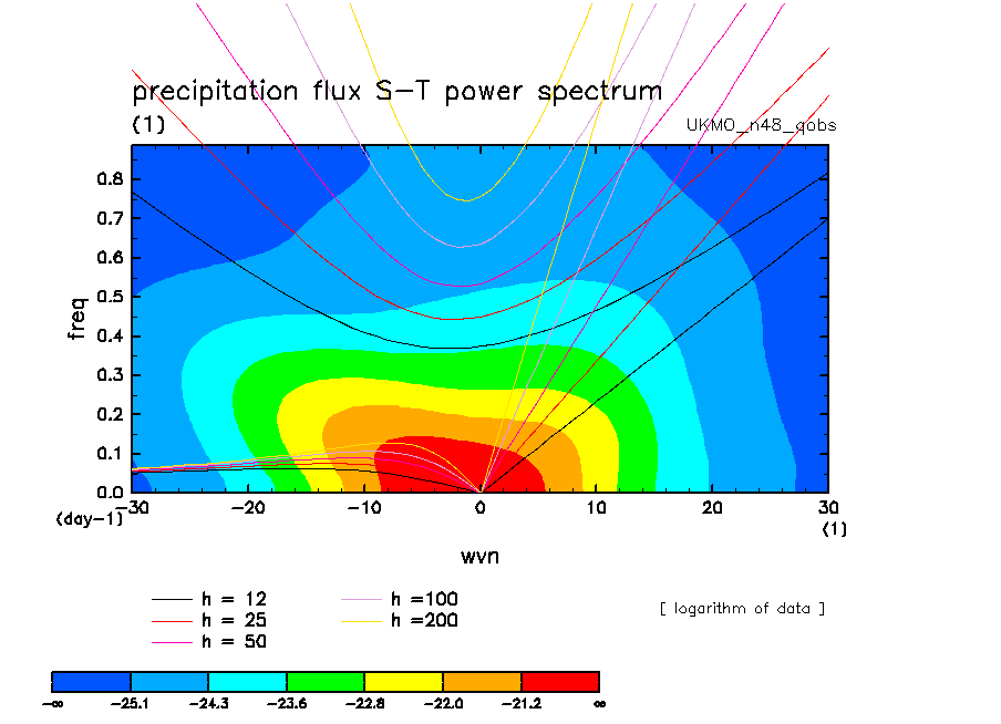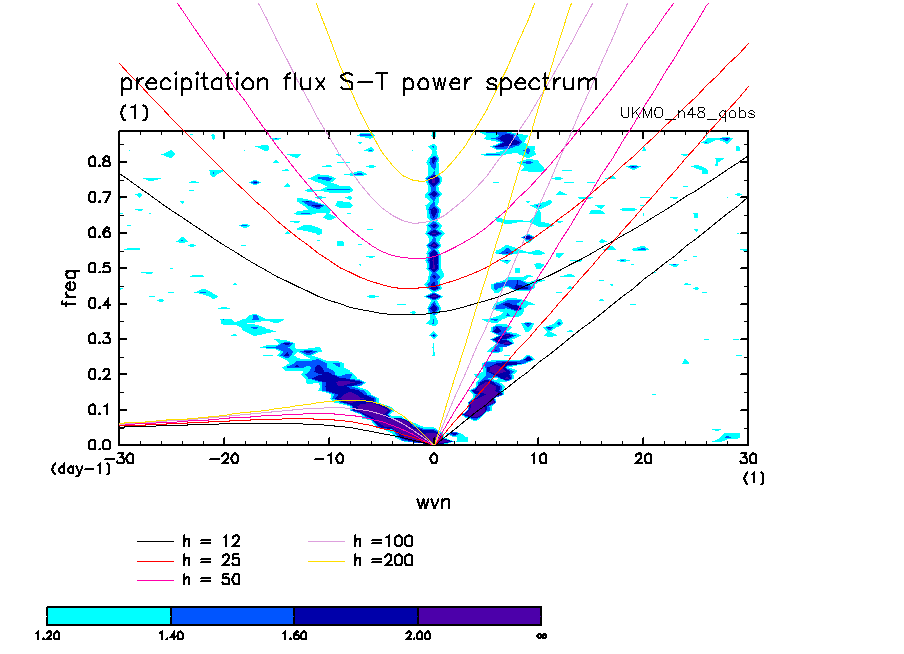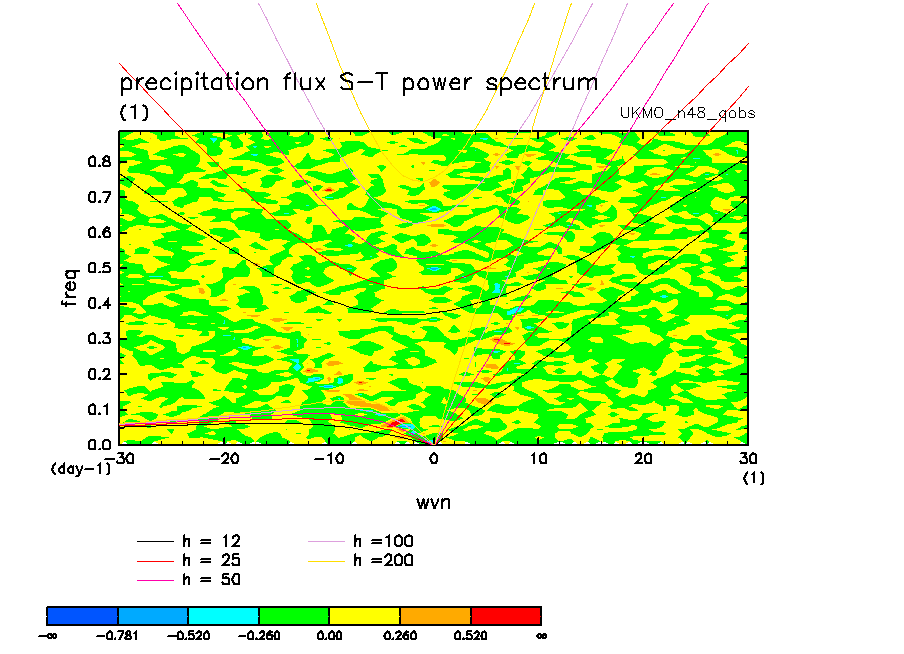<< Aqua Planet: Wheeler and Kiladis (1999) Plot from 'qobs' Experiment >> group: UKMO_n48 (United Kingdom Met Office) model: HadGAM1