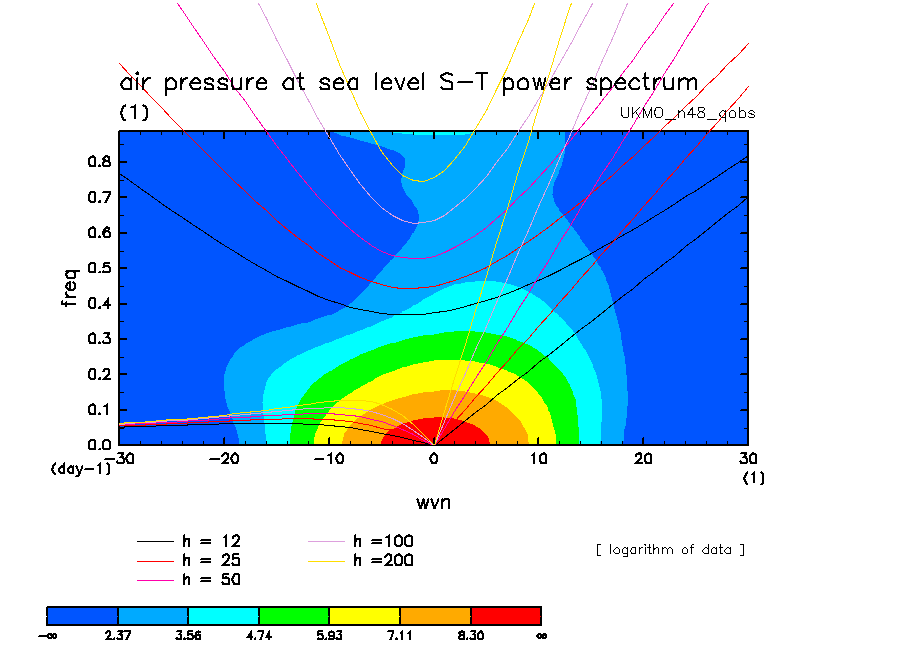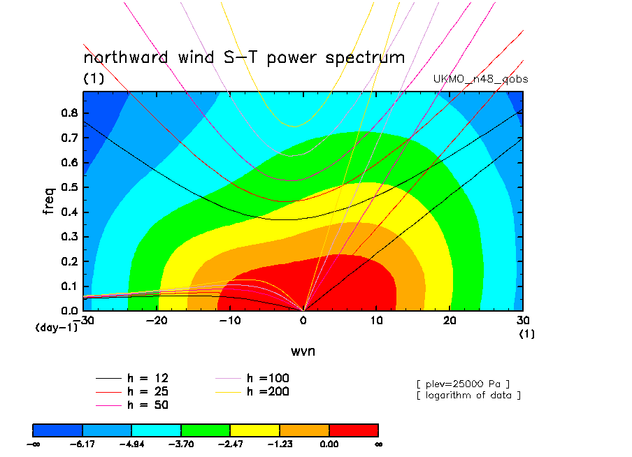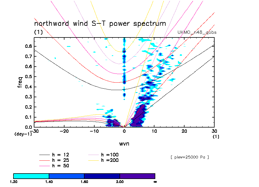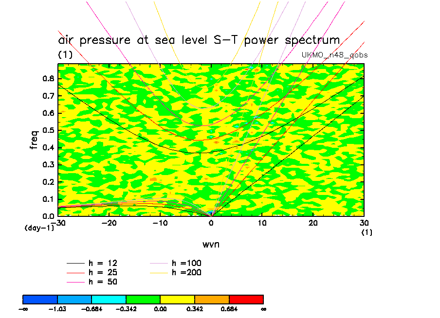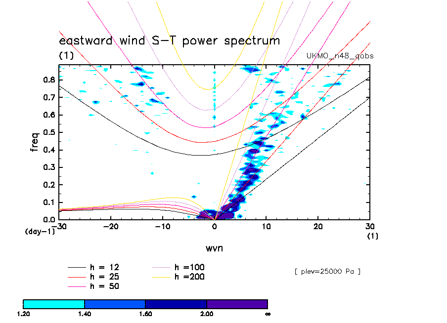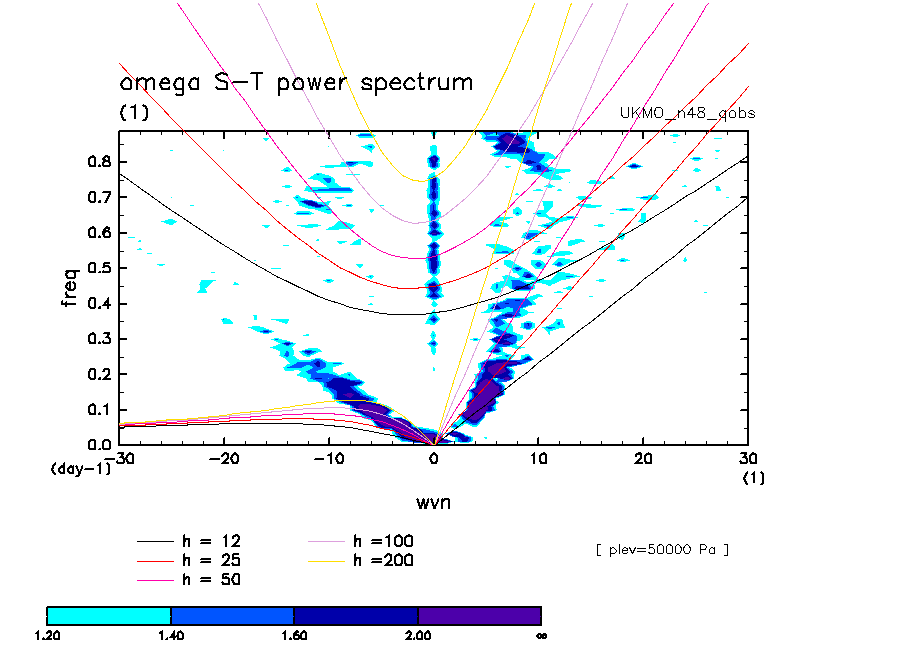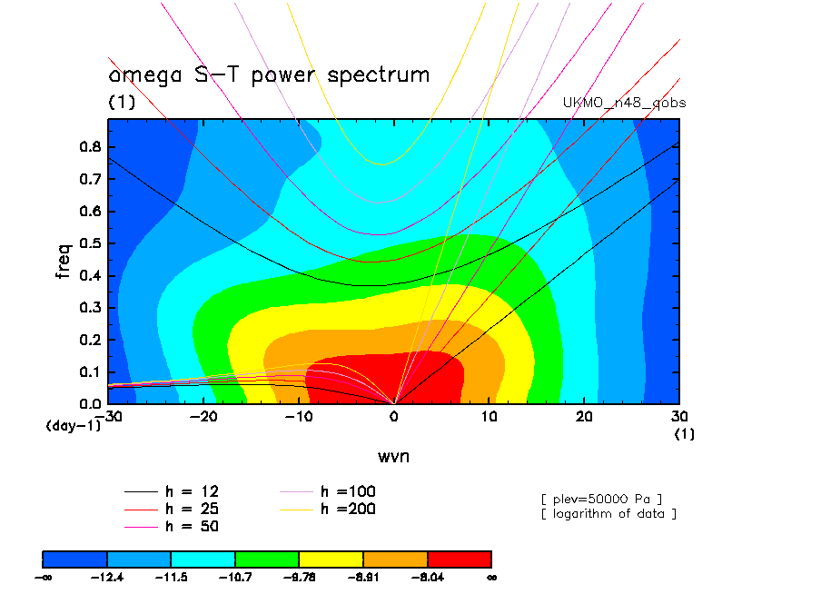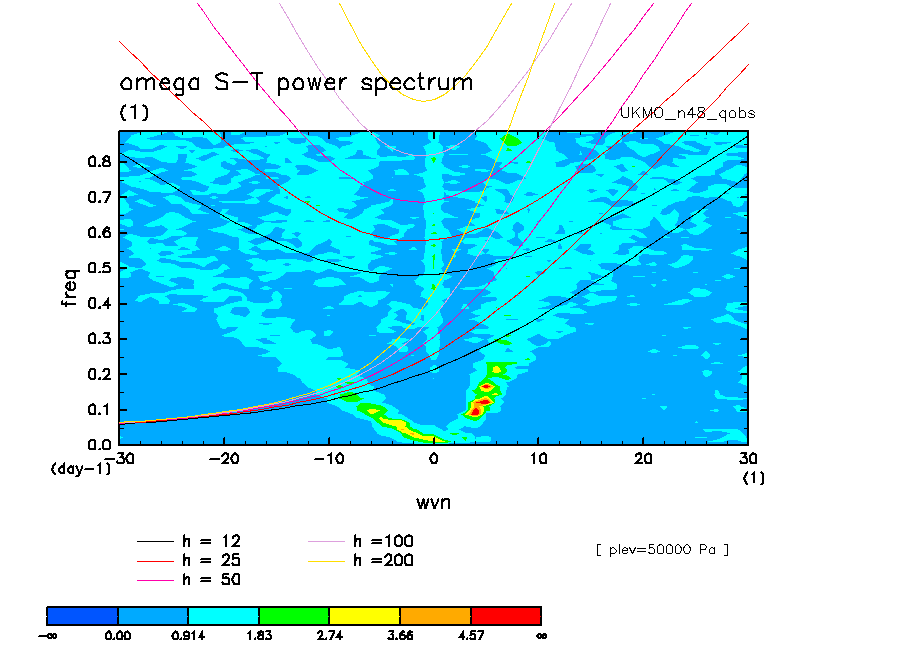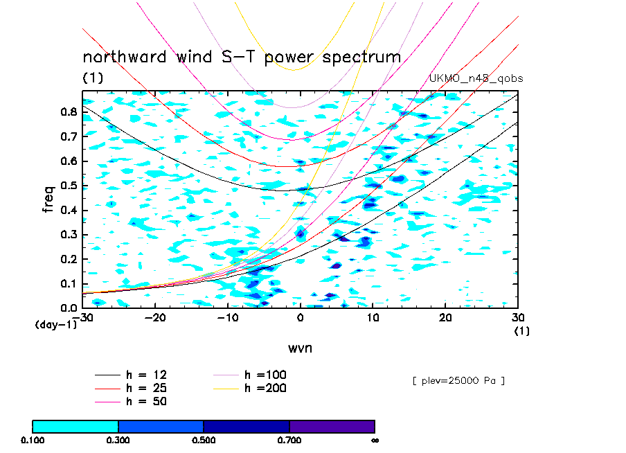 << Aqua Planet: Wheeler and Kiladis (1999) Plot from 'qobs' Experiment >> group: UKMO_n48 (United Kingdom Met Office) model: HadGAM1