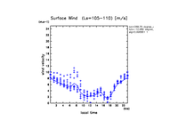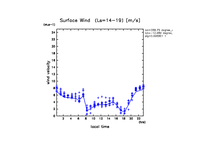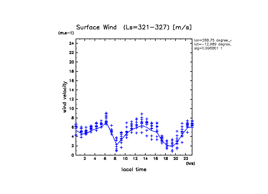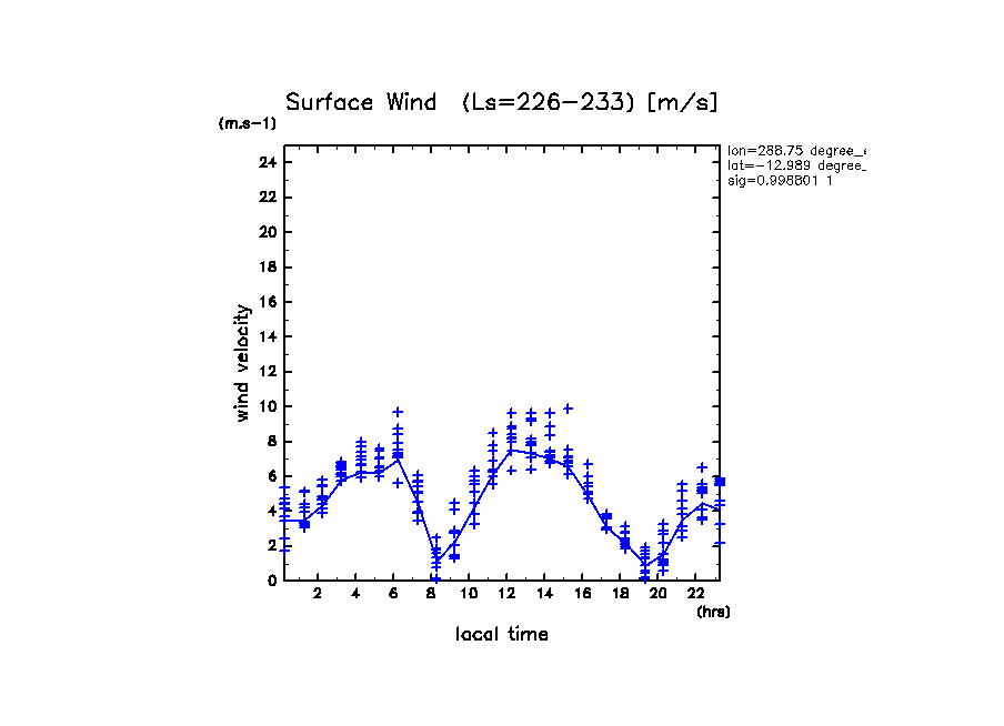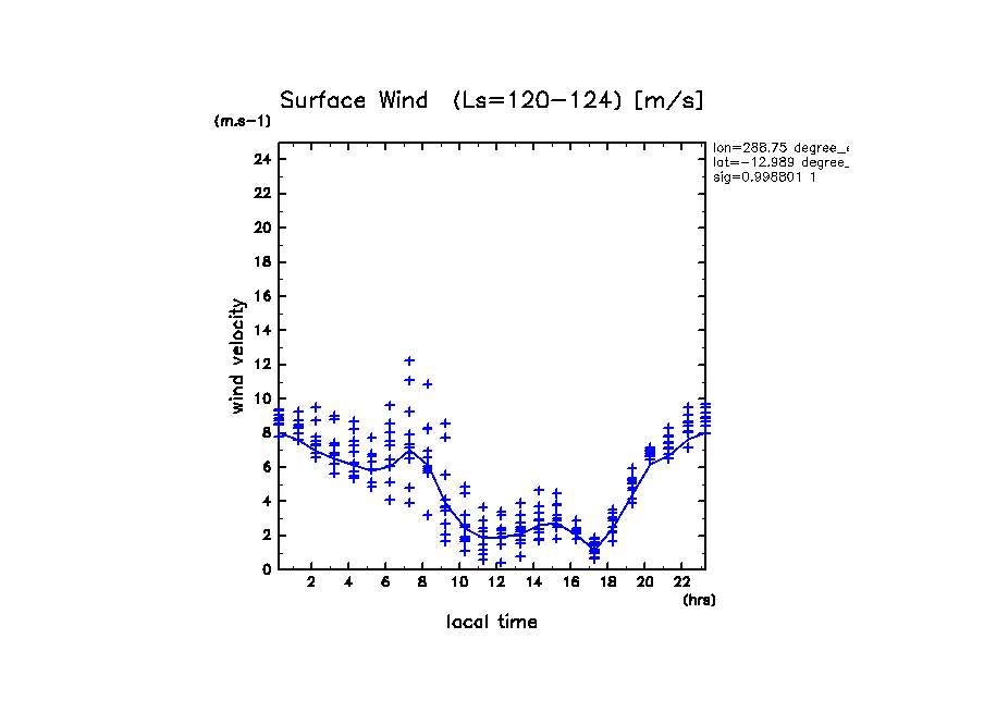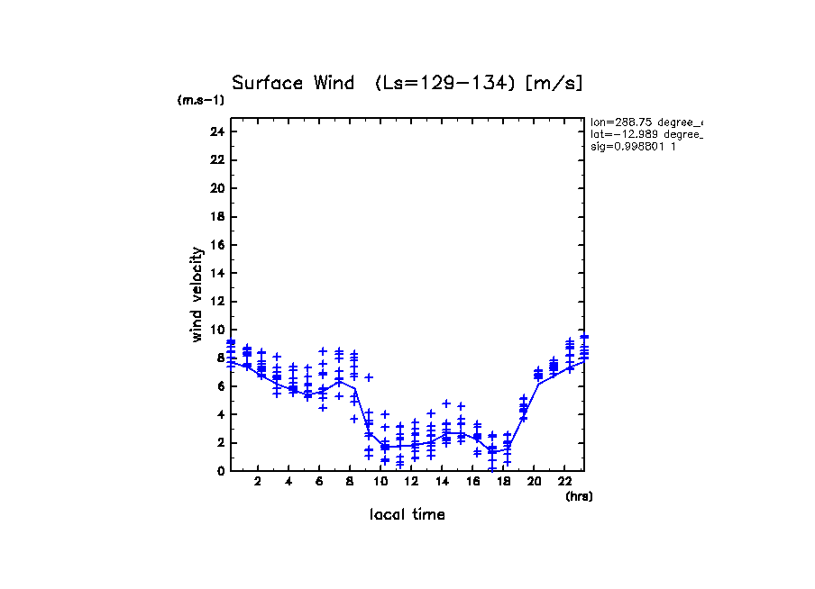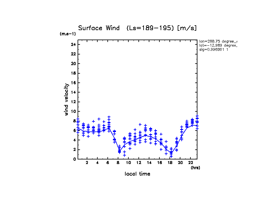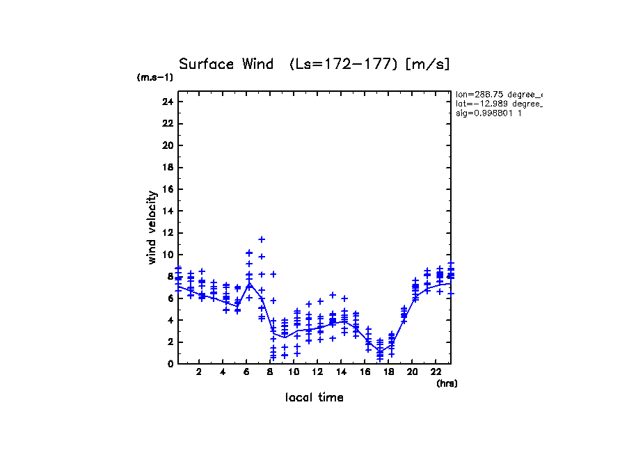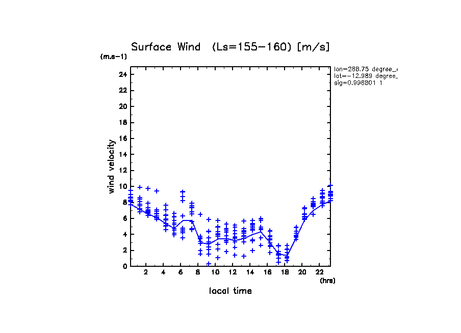地表風速の絶対値 (z=1m の換算値, 実線は平均)