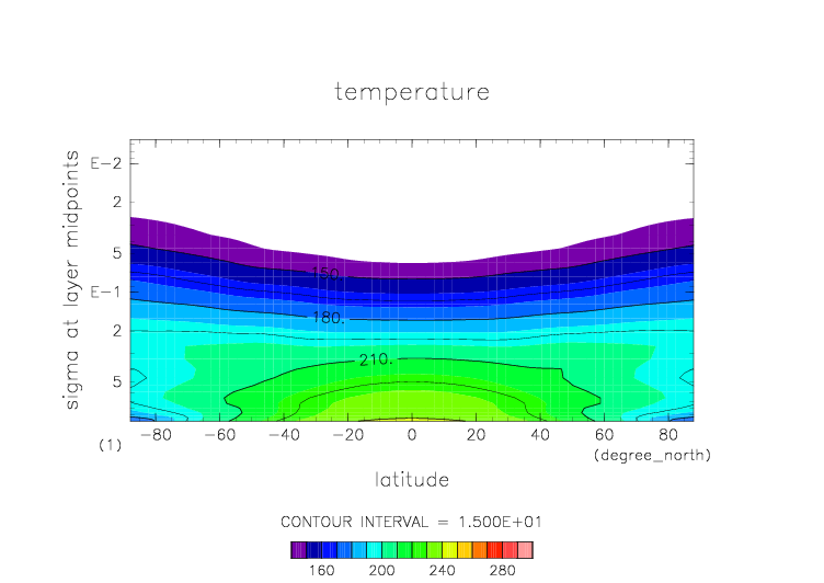 温度. 東西平均 (鉛直座標は対数プロット) |