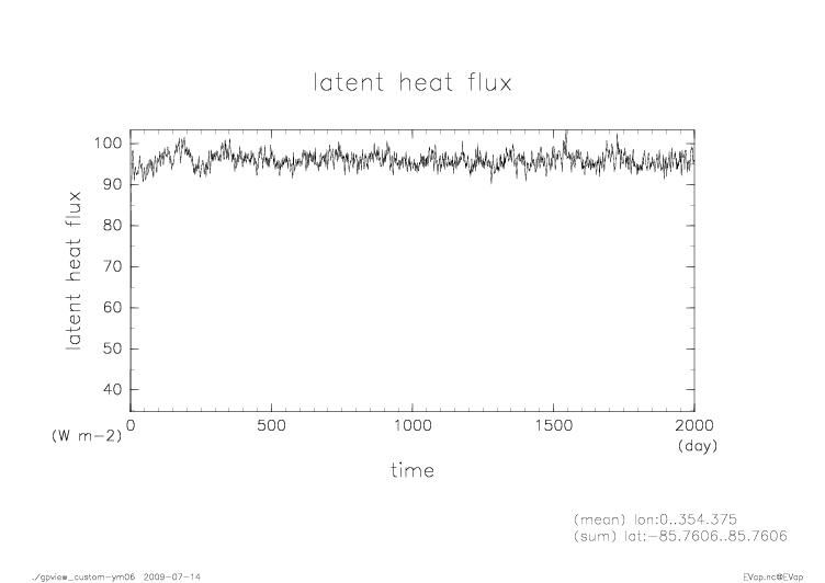 熱フラックス時系列 全球平均 (実線:OLR, 破線:SLR, 点線:降水, 一点鎖線:潜熱, 二点線:顕熱)