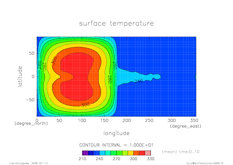 熱フラックス赤道断面 昼半球平均 (実線:OLR, 破線:SLR, 点線:降水, 一点鎖線:潜熱, 二点線:顕熱)