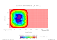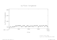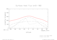 熱フラックス時系列 全球平均 (実線:OLR, 破線:SLR, 点線:降水, 一点鎖線:潜熱, 二点線:顕熱)
