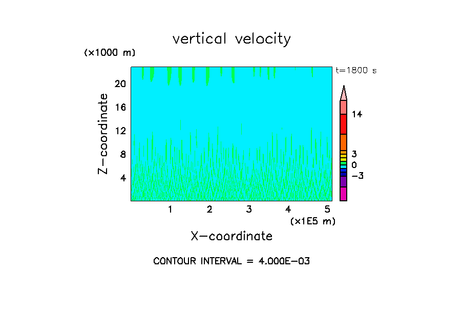 - 高度 300 m に振幅 0.3 K のランダムな擾乱を置く