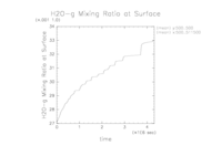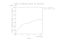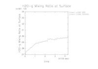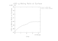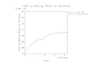 ここでは, 各計算設定における地表面での水蒸気混合比の時間変化を示す.