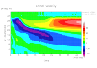 このページでは, deepconv で -1.0 K day-1 の一様冷却計算を行ったときの, 水平平均した水平風速の鉛直分布を示す.