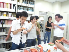 スイカに群がる人たち. |