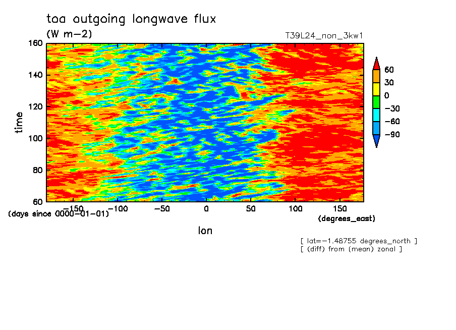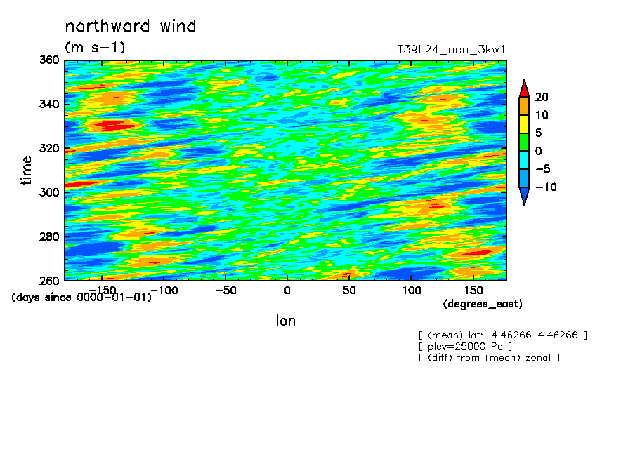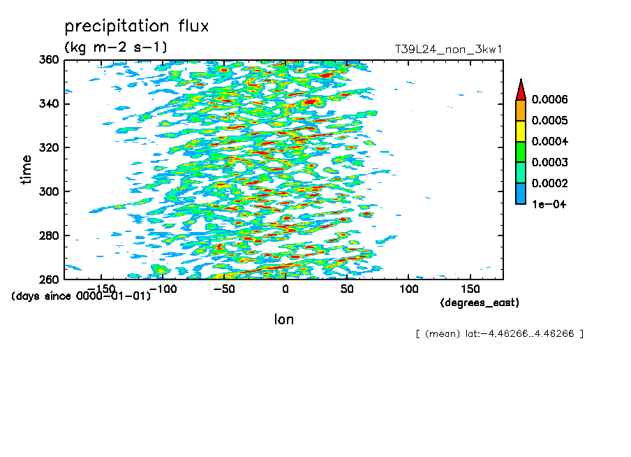 << Aqua Planet: Transients from '3kw1' Experiment ...consideration >> resolution: T39L24, cumulus parameterization: no cumulus scheme, Original data produced: 2005/02/** on ES.