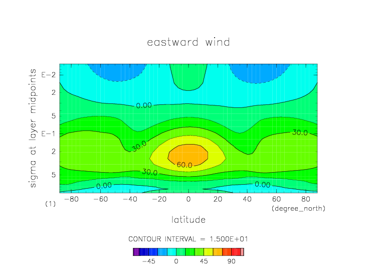 sigma=0.1 における東西風 |