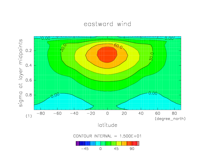 sigma=0.077 における東西風 |