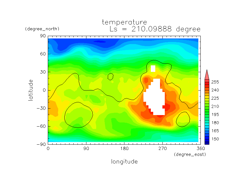 火星ダストと巻き上げ実験 DustScenario Const DOD067=0.2 水平分布の時間変化