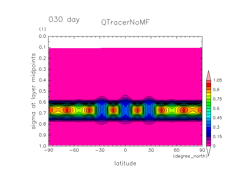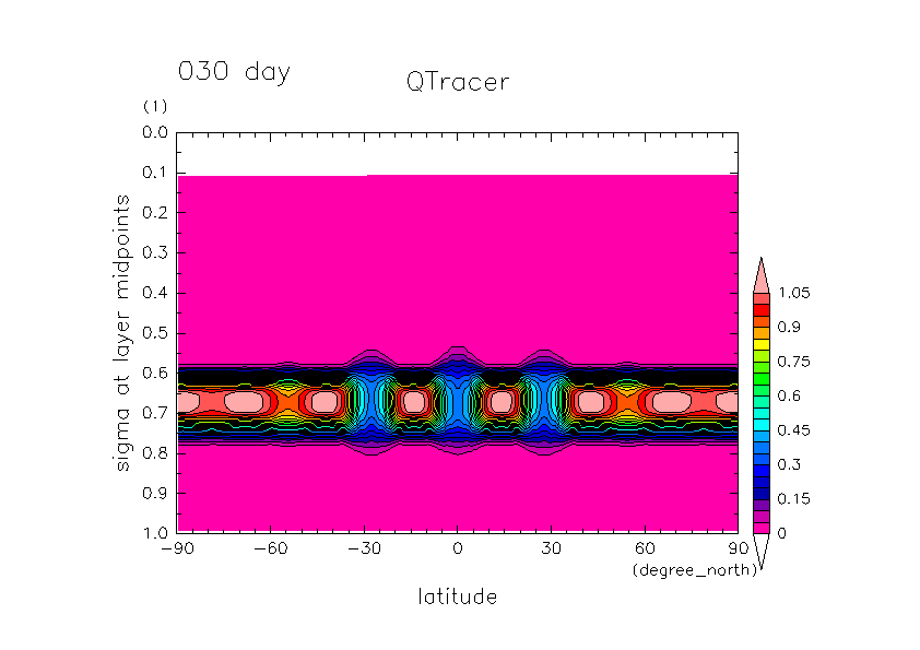 • Advection test by Earth's Hadley type meridional circulation
