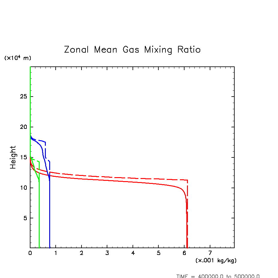 凝結成分気体混合比の水平・時間平均(赤: H2O, 緑: H2S, 青: NH3)