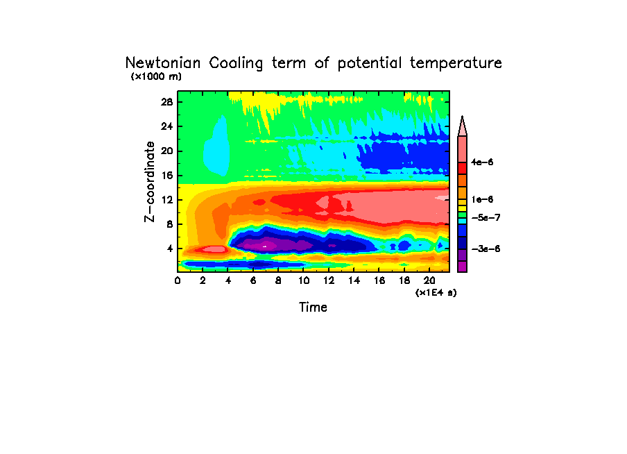 - -2 [K] * (15 [km] - z)/5 [km] [K/day]