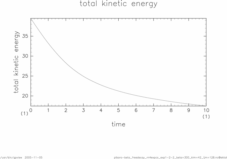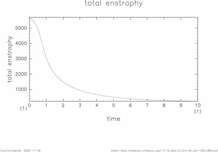 2次元2重周期境界順圧モデル : 減衰乱流問題実験1-2 結果: 演算子分割処理法(線形項) & 4次 Runge-Kutta スキーム ruby ソース置き場ディレクトリ