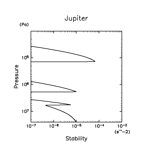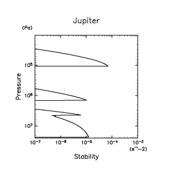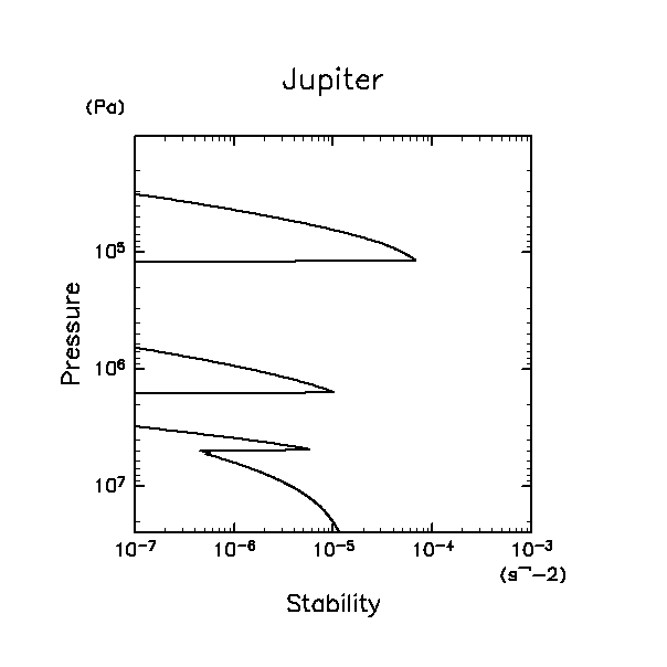 2.5d7 Pa での温度をパラメタとして天王星大気の温度と静的安定度を計算する.