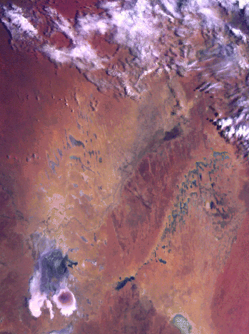 southeast of Alice Springs. At lower left is Lake Eyre, a salt lake